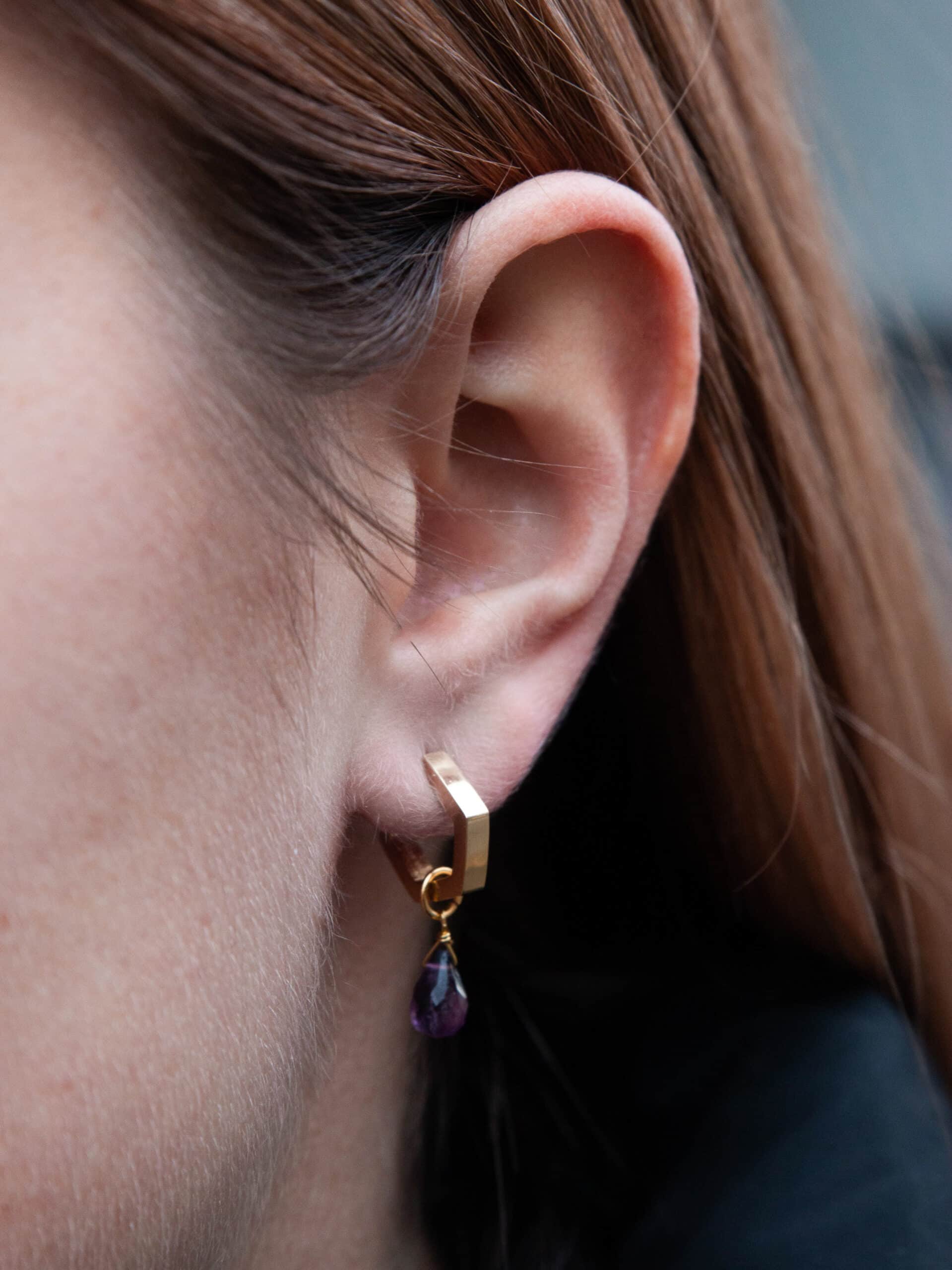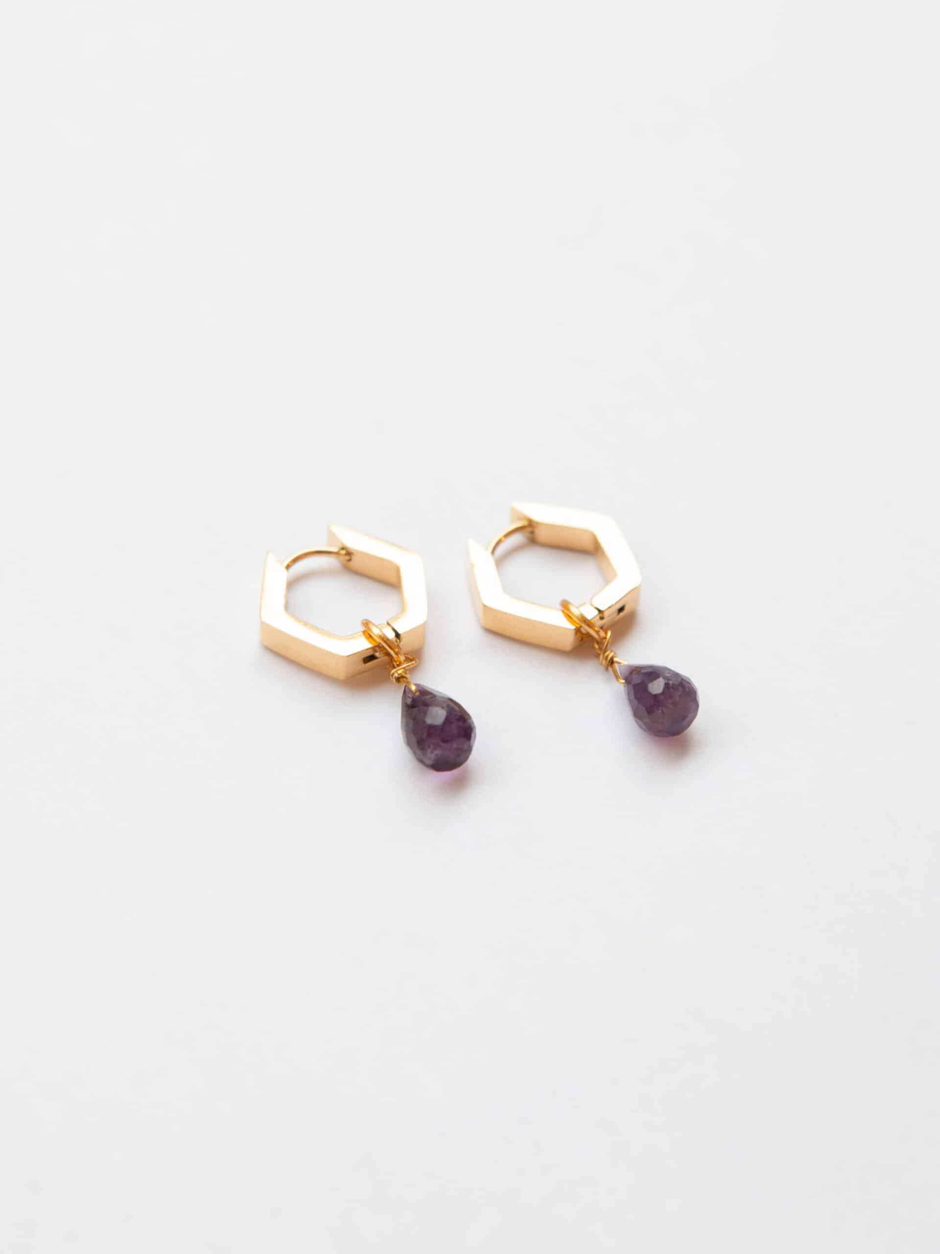Charm it up! Die kleinen Moon Love Steinchen passen perfekt zu den kantigen Hexagon Huggies. Bringe etwas Edge und Farbe in dein Outfit.