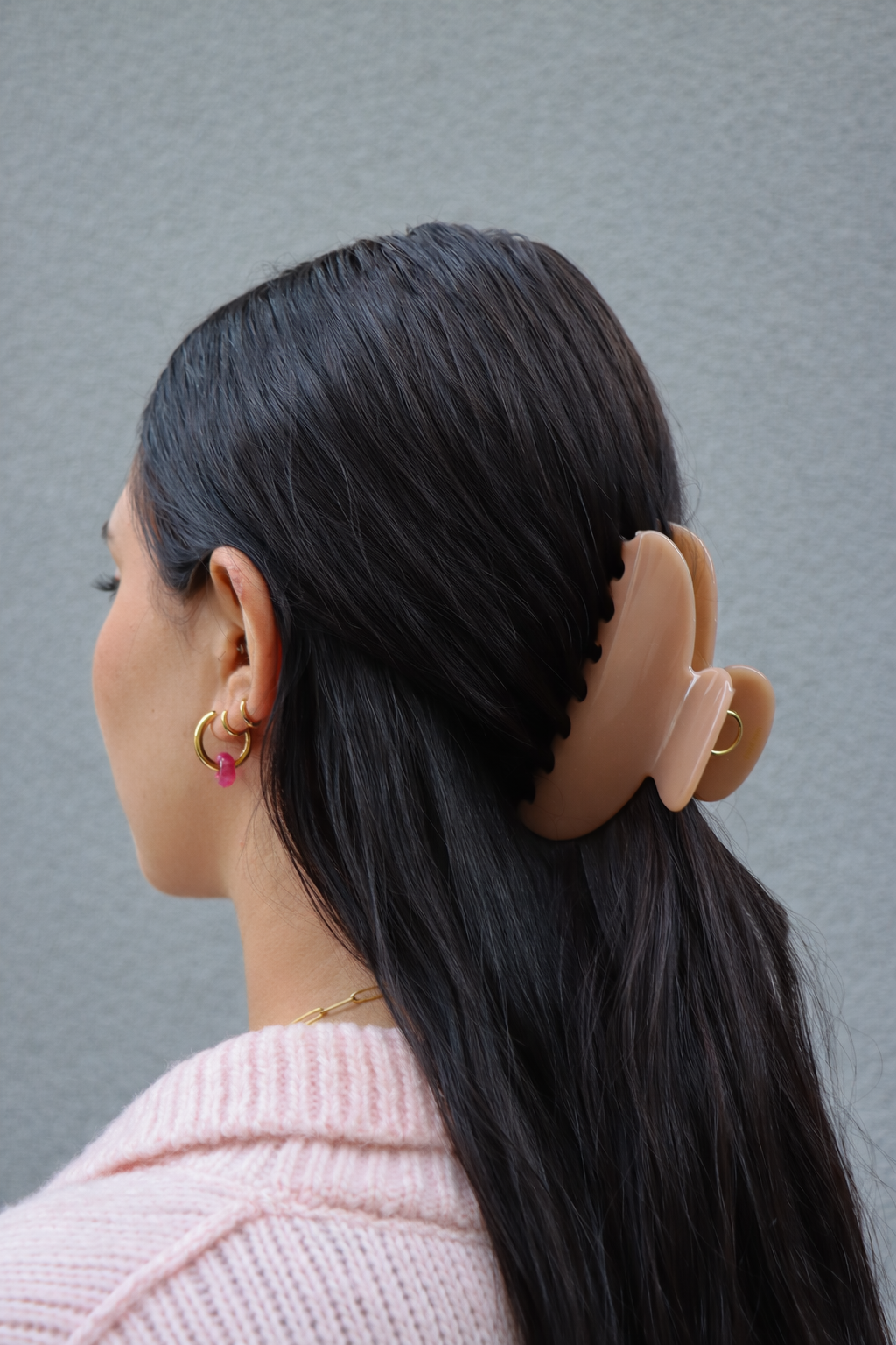Ähnlich wie unsere beliebte Rachel Hairclip überzeugt die Modern Rachel durch minimalistisches Design – jetzt mit einem modernen Touch und edlen goldfarbenen Details. Die klare, stilvolle Form macht sie zum eleganten Hingucker in deinem Haar. Ideal für mittleres bis dickes Haar, sorgt sie für sicheren Halt und angenehmen Tragekomfort – den ganzen Tag. Ob im Alltag oder zu besonderen Anlässen: Diese Haarspange verleiht deinem Look einen Hauch von Glamour und zeitloser Eleganz.