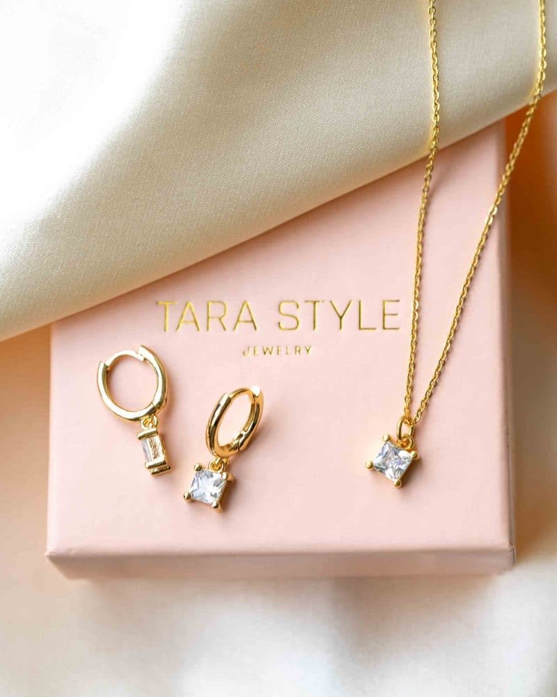 Square Crystal Schmuck Set (wasserfest)