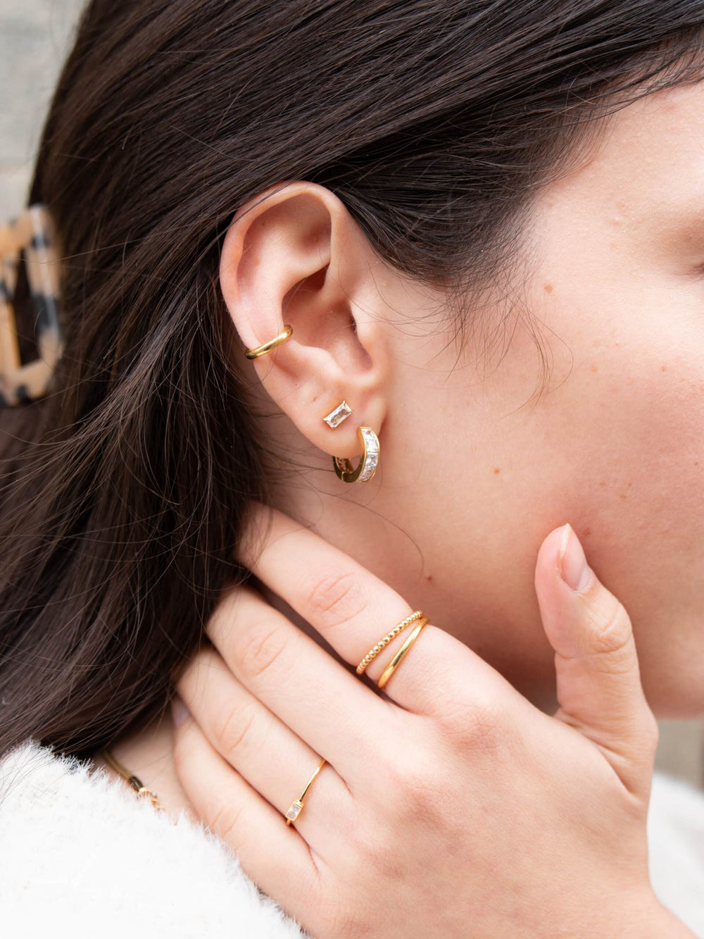 "Ohranhänger runden jedes Outfit ab und sind einfach ein unverzichtbares Accessoire. Egal ob auffällige Hoops oder dicke Creolen, zarte Huggies, schlichte Ohrstecker, moderne Earcuffs und Helix Piercings – kreiere jeden Tag neue, aufregende Looks die deine Persönlichkeit perfekt unterstreichen! Alle Tara Style Schmuckstücke rund ums Ohr sind aus recyceltem 925 Sterling Silber22 Karat vergoldetem Messing18 Karat vergoldetem Edelstahl oder Echtgold hergestellt. Echte Halbedelsteine runden die handgefertigten Designunikate perfekt ab. Unser Ohrschmuck ist nickelfrei und zudem hypoallergen. Sofern du einen Ohrring verloren hast, kannst du Online auch Einzelstücke bestellen. Deine Earparty kann also ganz nach dem Motto: Mix & Match losgehen. Kombiniere deine Favoriten und traue dich an neue Looks heran."