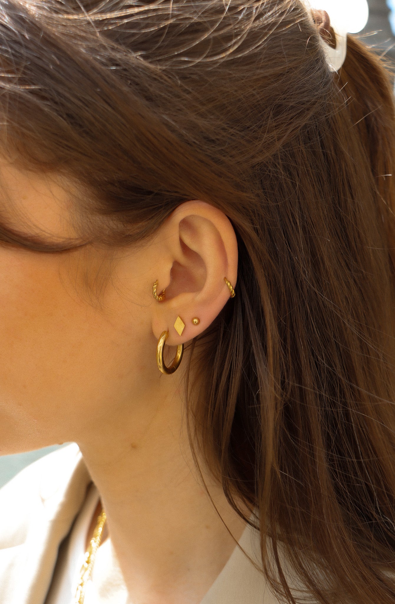 Bring deine Earparty aufs nächste Level! Du kannst die gedrehten Mia Twisted Huggies sowohl am Helix, Rook oder Tragus als auch ganz klassisch am Ohrläppchen im zweiten Ohrloch tragen, Somit bleiben dir zahlreiche Kombinationsmöglichkeiten für deinen ganz eigenen Look.