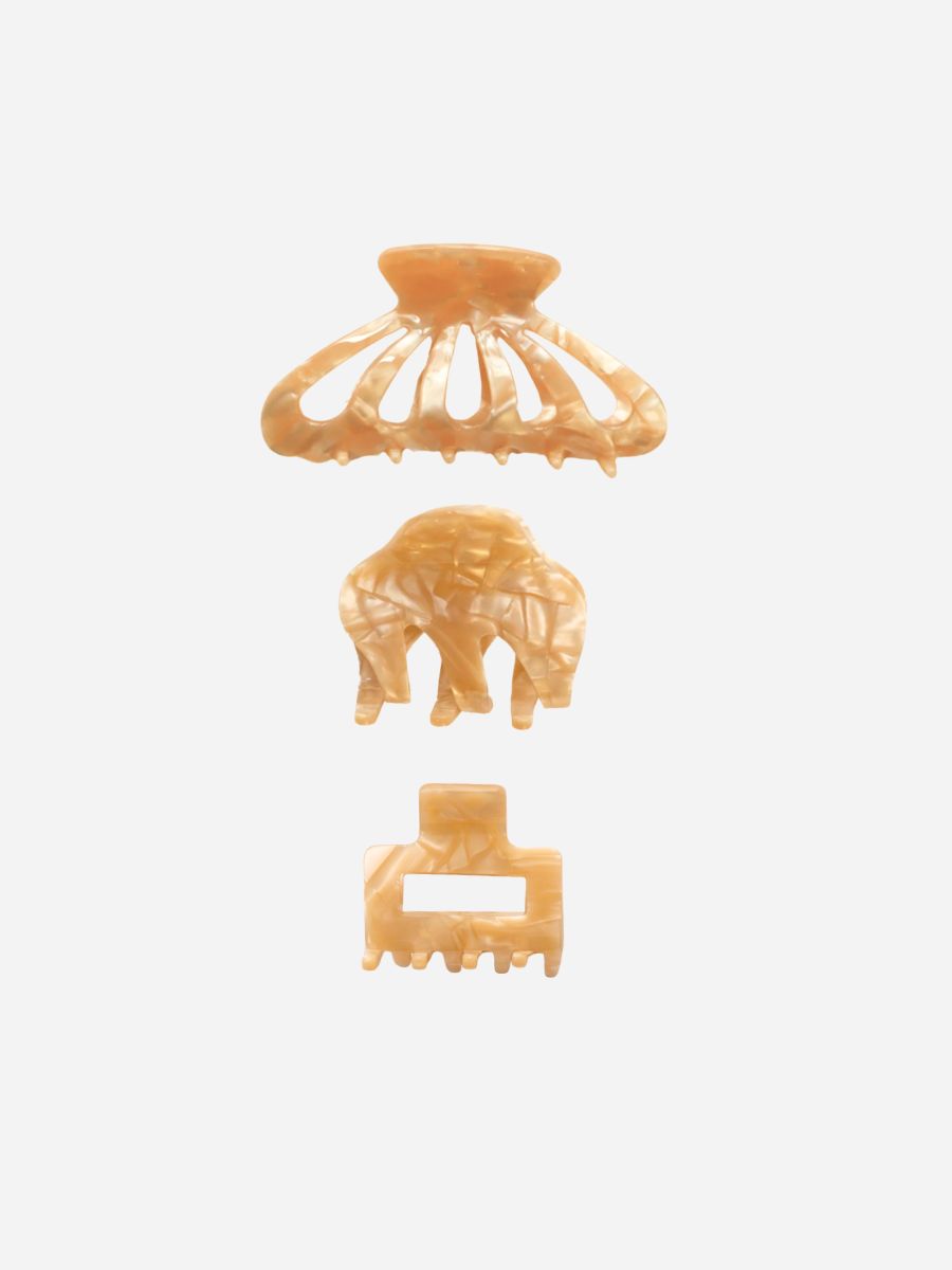 Mit dem Everyday Pearl Dust Hairclip Set bringst du schimmernde Eleganz in deinen Alltag. Drei zart glänzende Clips in perlig, champagnerfarbenen Tönen verleihen deinem Look eine edle, natürliche Note. Als Set zum Vorteilspreis erhältlich.