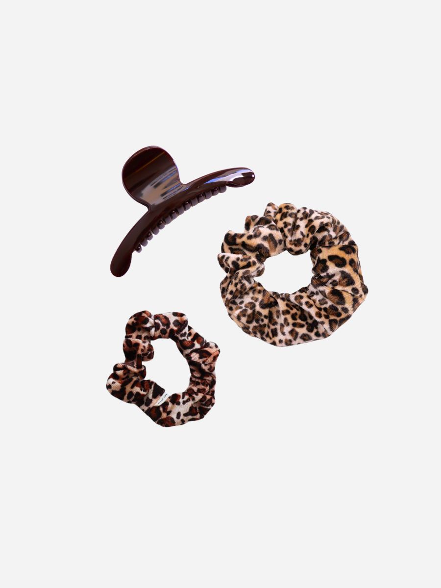- Set:1x Leo Miriam Scrunchie,1x Leo Small Miriam Scrunchie,1x Modern Romy Hairclip (Bordeaux)