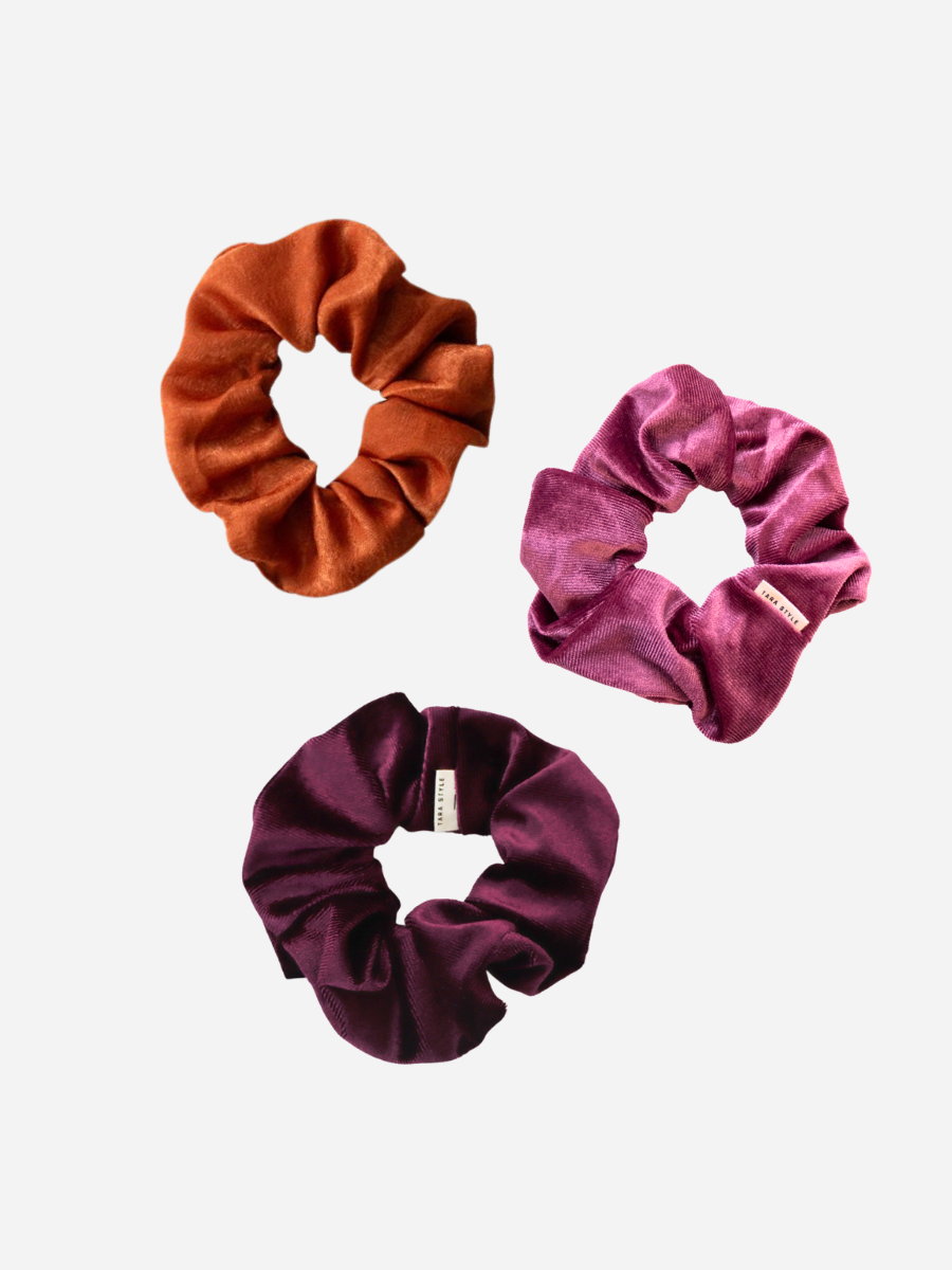 • Set: Miriam Scunchie (Fuchsia & Bordeaux), Shiny Lauren Scrunchie (Orange)