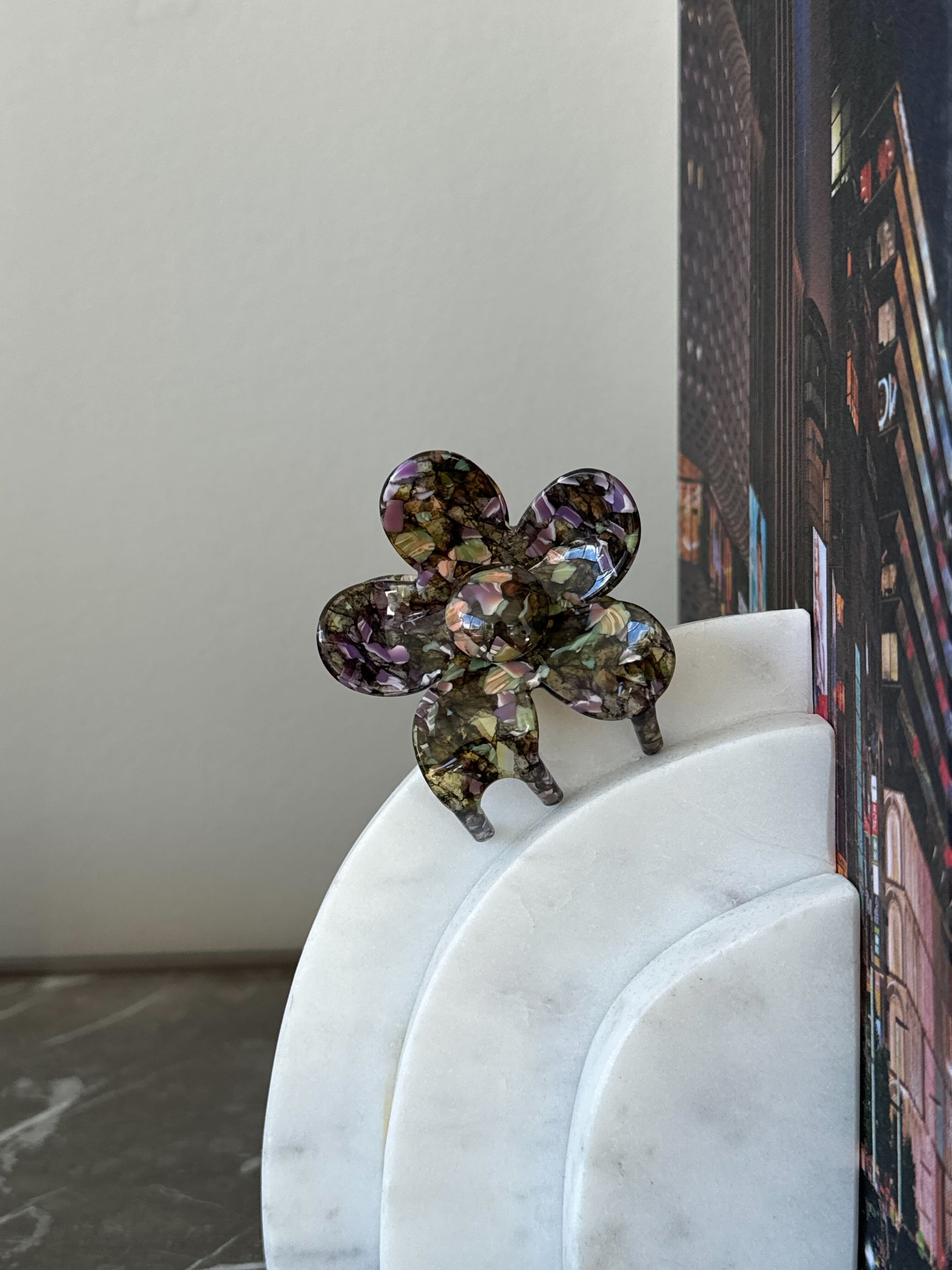 No more boring Hairdays! Der Flower Sprinkled Hairclip vereint starken Halt mit trendy Blüten-Design. Die einzigartige Form ist nicht nur praktisch, sondern setzt auch einen stilvollen Akzent, der deinem Look sofort eine moderne Eleganz verleiht. Ideal für schnelle, schicke Frisuren, die den ganzen Tag halten.