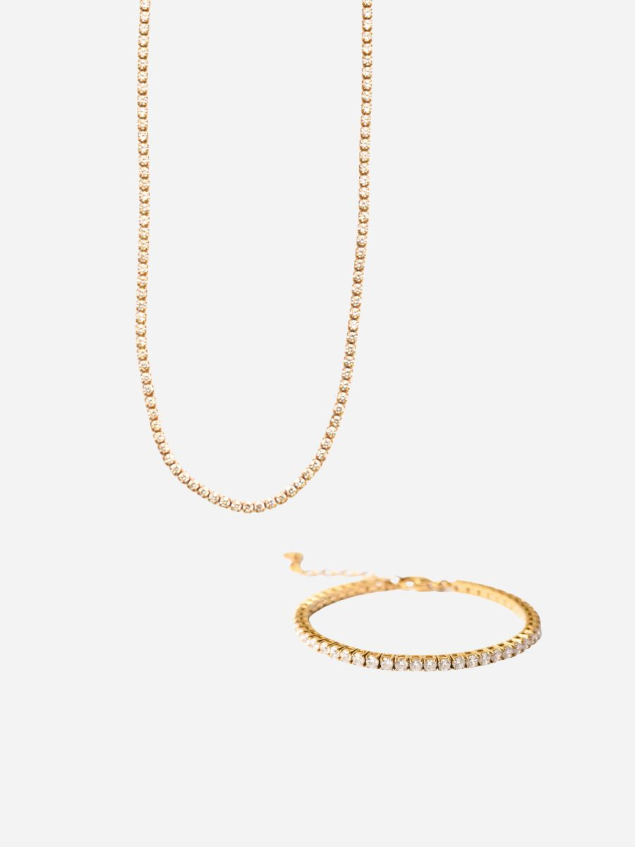 Das Martina Schmuckset vereint Eleganz und Glamour in jedem Look. Die Martina Necklace mit funkelnden Zirkonia-Steinen verleiht deinem Outfit eine luxuriöse Note. Das passende Bracelet ergänzt das Set perfekt und sorgt für harmonisches Funkeln. Zusammen strahlen beide Schmuckstücke Stil, Raffinesse und feminine Eleganz aus.
