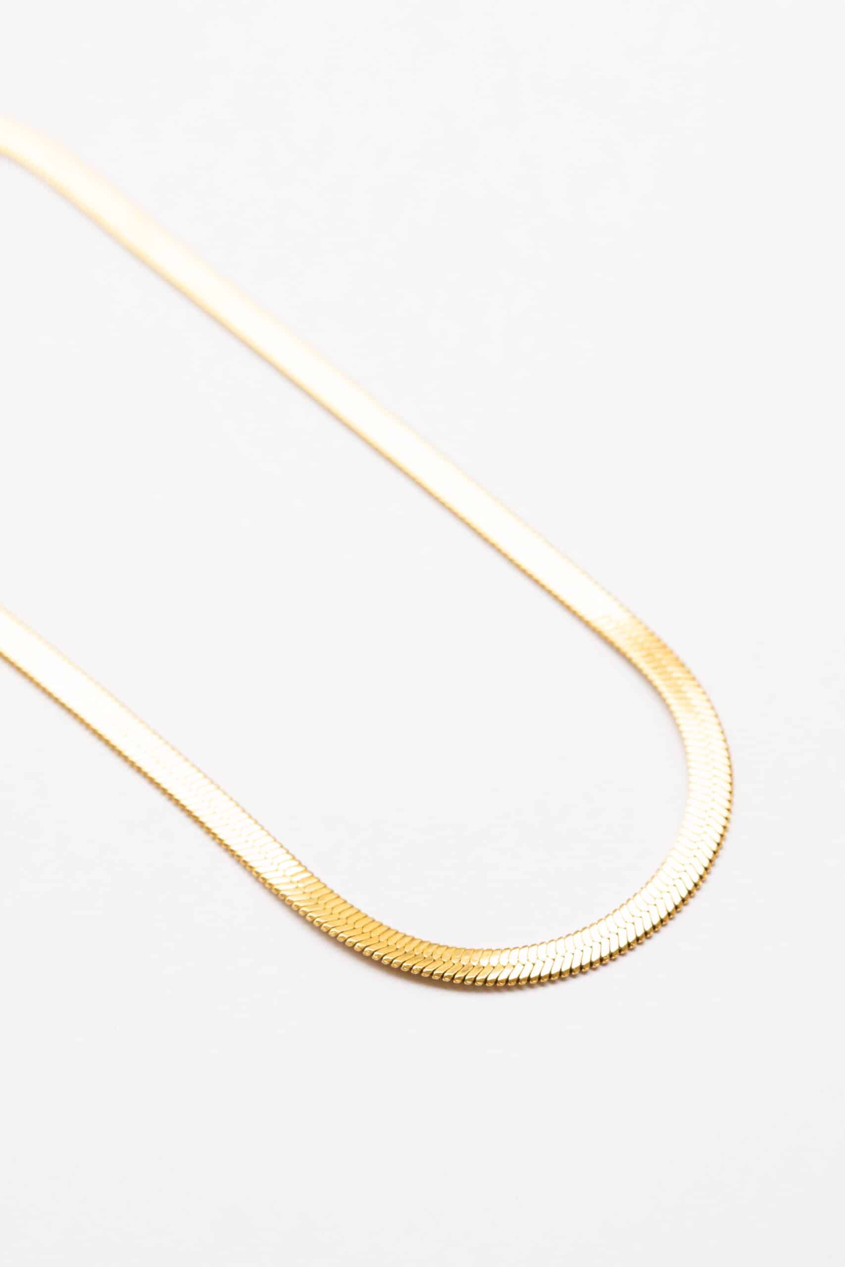Unsere beliebte Adrian Halskette gibt es jetzt als schmeichelnden Choker! Durch die eng aneinandergereihten Kettenglieder erhält die Snakechain ihre besondere Oberflächenbeschaffenheit. Das stylische IT-Piece in Gold ist wasserfest und lässt sich toll mit anderen Halsketten zu einem coolen Layering Look kreieren. Zudem zeichnet sich die Kette durch feinste Handarbeit aus. Die Länge ist zwischen 32 und 37 cm längenverstellbar. Somit kannst du sie ganz einfach mit anderen Ketten in verschiedenen Längen kombinieren.