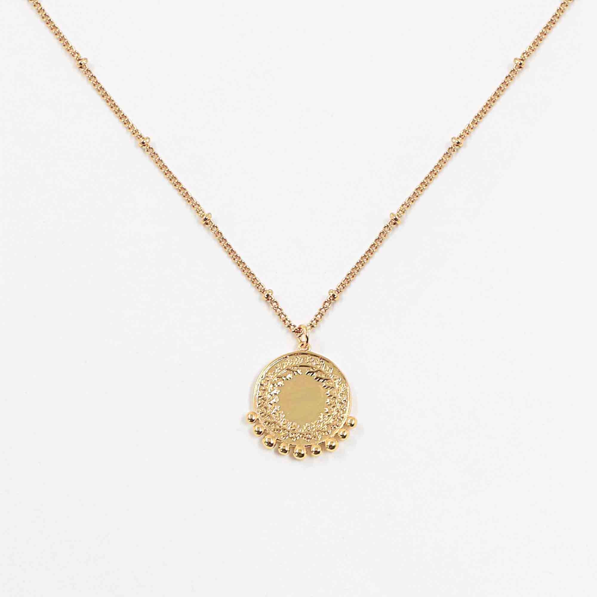 Unser goldenes Amélie, Ava, Dotted Medaillon Ketten Set - ist nicht nur ein Schmuckstück, sondern auch eine Wertschätzung an die reiche Kultur und Tradition Indiens. Es ist ein einzigartiges und stilvolles Accessoire, das sowohl modern als auch traditionell ist.