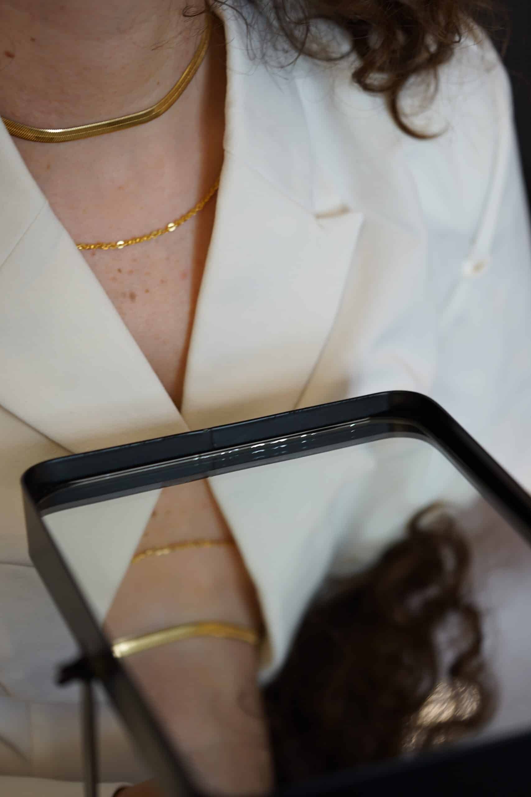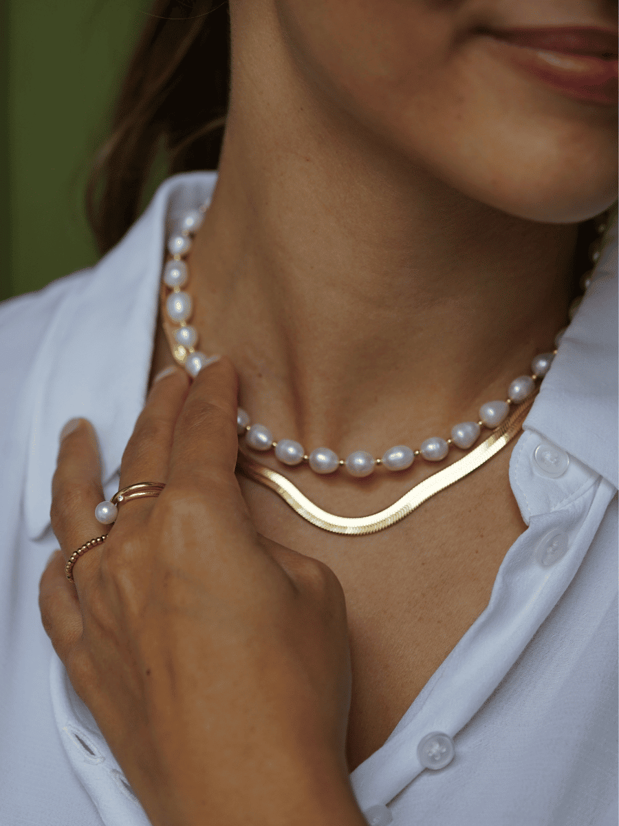 Unsere beliebte Amélie Halskette gibt es jetzt auch als stilvollen Choker. Die feine Snake Chain ist wasserfest und handgefertigt. Dank der verstellbaren Länge (32–37cm) ideal für Layering-Looks. Ein elegantes IT-Piece, das jedem Outfit das gewisse Etwas verleiht.