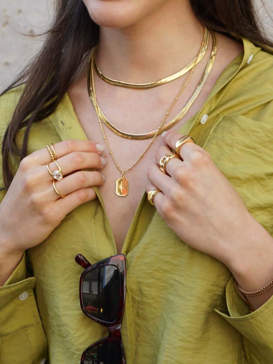 Layer it up! Denn diese Saison erobern trendige Halsketten-Layerings die Modewelt. Kombiniere dafür ganz einfach Ketten mit verschiedenen Strukturen und Längen miteinander. Und schon bist du bei diesem Trend dabei. Du hast noch keinen passenden Layering-Look gefunden? Oder kannst dich zwischen den vielen Ketten nicht entscheiden? Dann entdecke hier wundervolle Kombination, welche aus unseren neusten Halsketten bestehen. Garantiert! Mit unseren Halsketten Sets wirst du ein Fashion-Statement setzen. Magst du zudem detailreiche Schmuckstücke, welche durch ihre besonderen Strukturen auffallen? Dann finde weitere Schätze, mit welchen sich endlose Kombinationsmöglichkeiten für jeden Anlass anbieten.