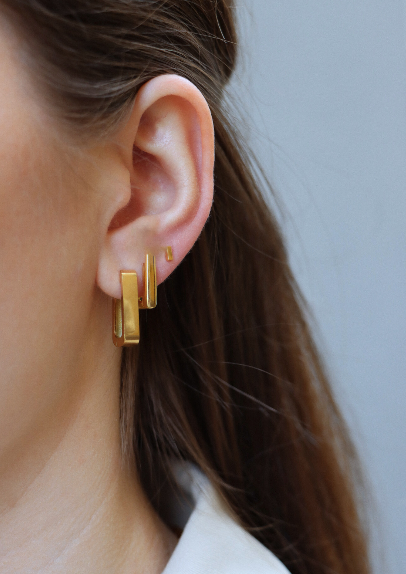 Verleihe deinem Style mit unserem einzigartigen Ohrring-Set den perfekten Touch. Die Bold Bruna Hoops und Madison Hoop Square setzen coole Akzente. Vervollständige deinen Look mit unserem  zeitlosen Tsering Piercing. Alle Ohrringe sind wasserfest, perfekt für den täglichen Einsatz. Kombiniere sie nach Belieben für einen individuellen Earstacking-Look.