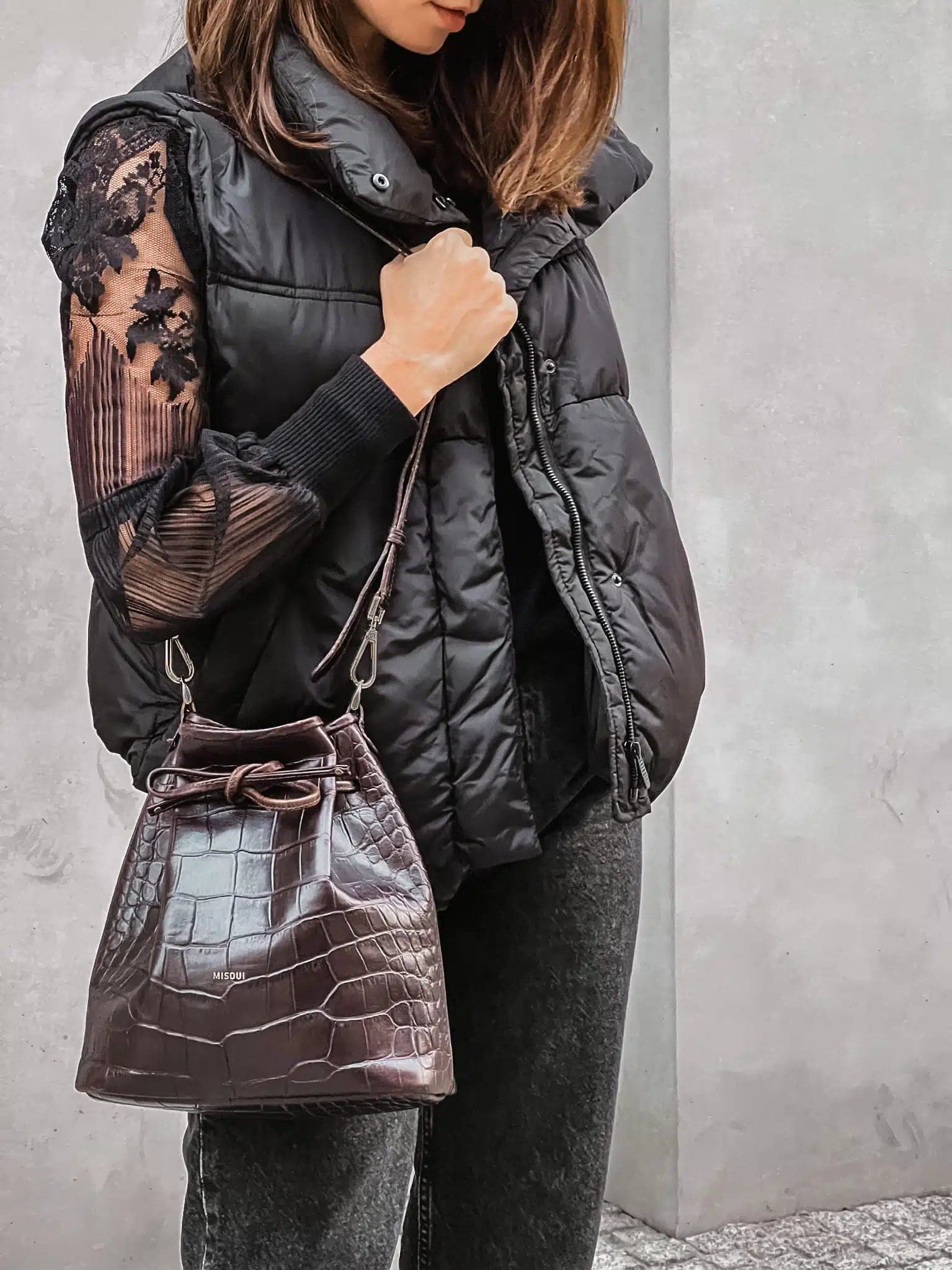 Cacao Croco Bucket Bag - Beuteltasche Misoui