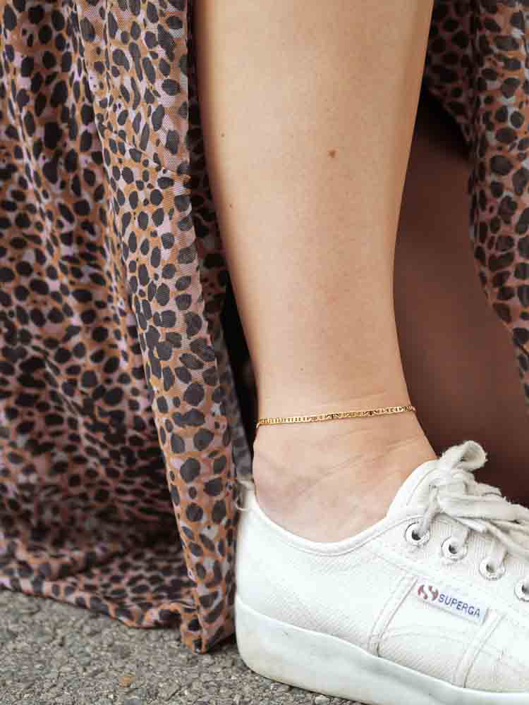 Kein Sommer ohne Fusskettchen! Die handgemachte Cecilia Fusskette besteht aus 18 Karat vergoldeten Gliedern und kann lässig zur cropped Jeans oder elegant zum Abendkleid getragen werden. Denn aufgrund des simplen Designs ist sie ein stylisches Accessoire für jeden Anlass.