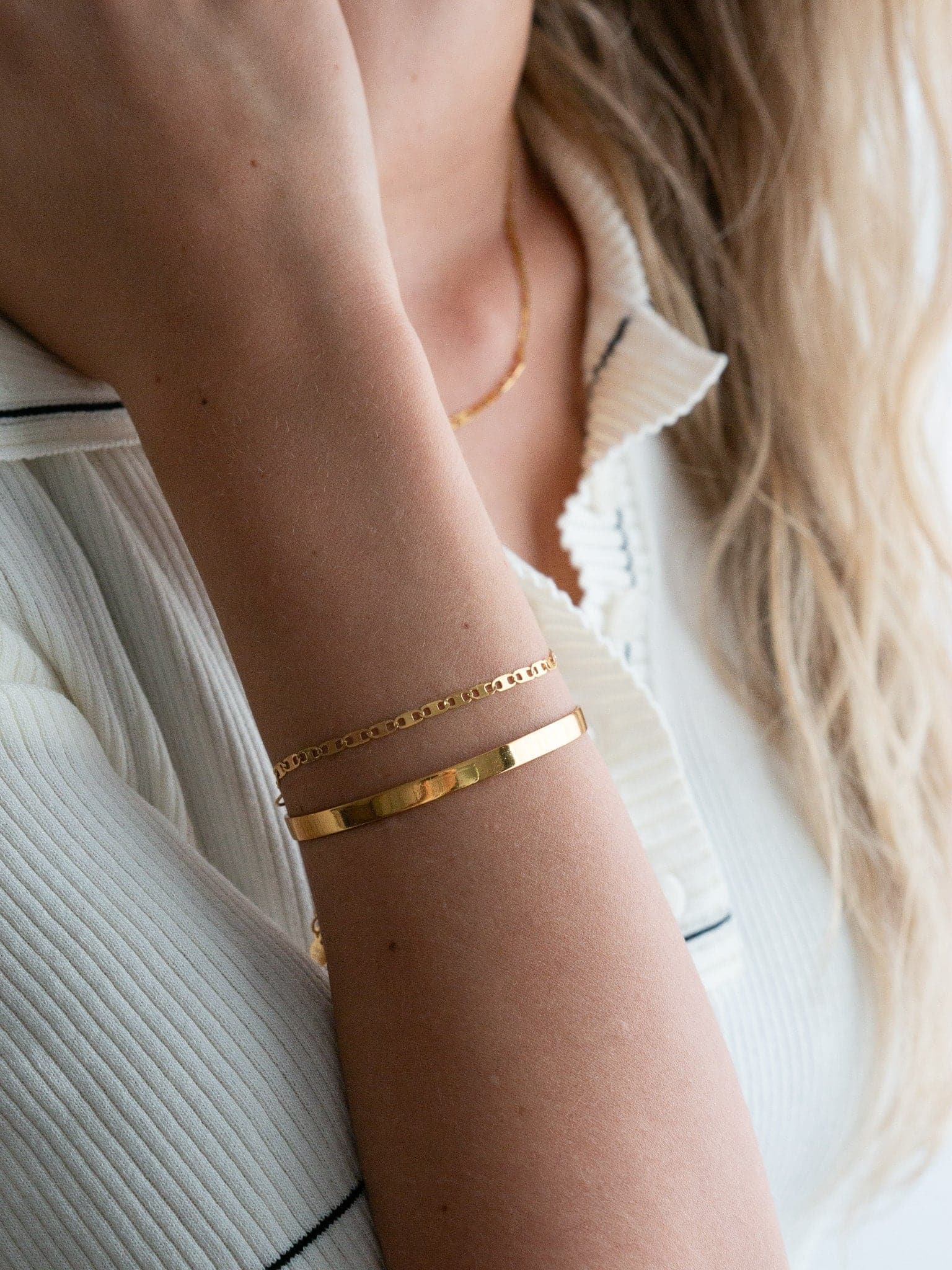 Das Cecilia Bracelet ist das perfekte goldene Armband für jeden Tag. Es hat eine coole und besondere Gliederung, die jedes Outfit besonders macht. Du kannst es alleine tragen oder mit anderen Armbändern kombinieren, es wird immer strahlen.