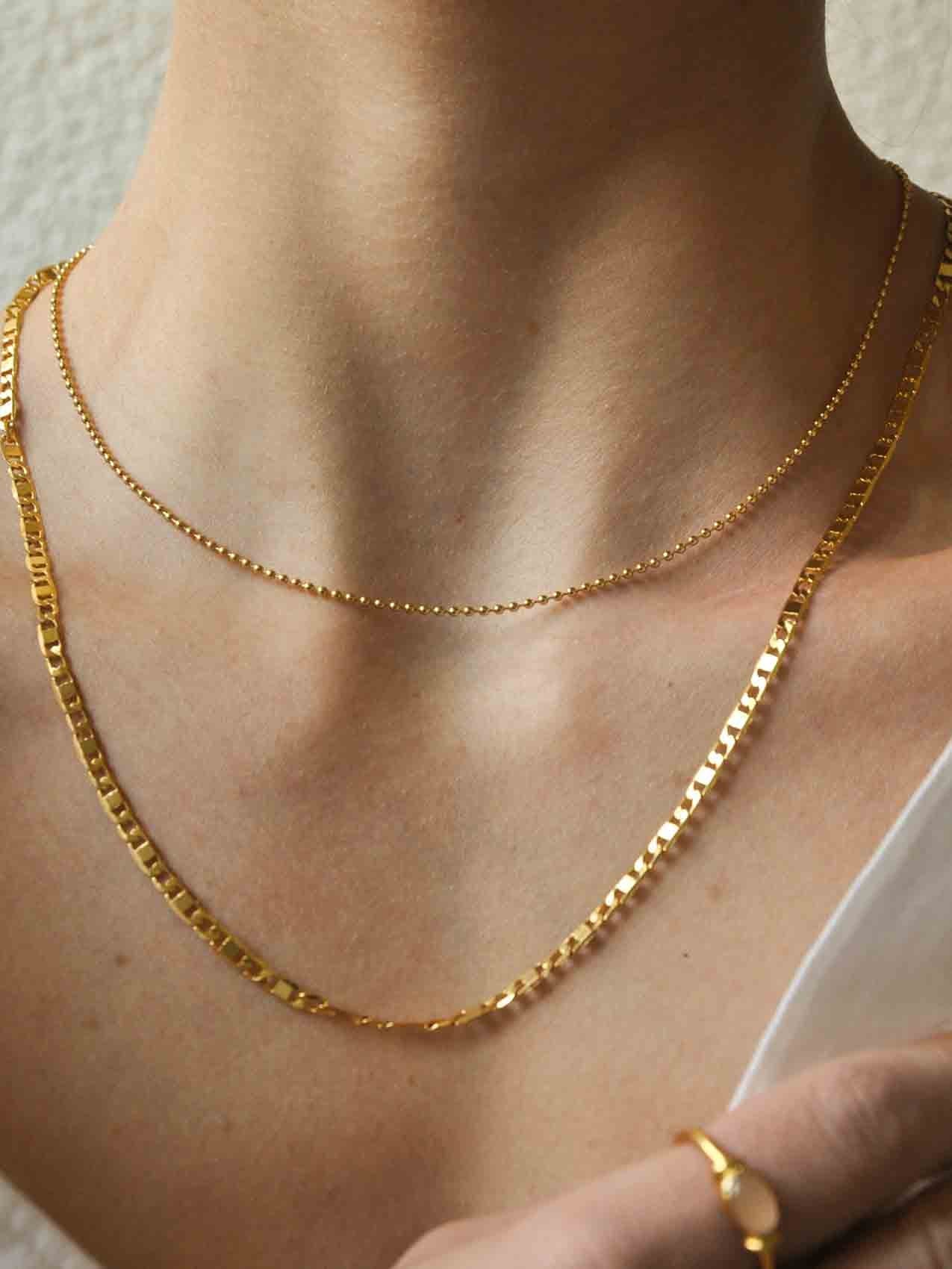 Unsere Schmuckstücke werden in Zürich designed und in unseren eigenen Ateliers unter fairen Bedingungen von Hand hergestellt. Dabei werden ausschliesslich qualitativ hochwertige Materialien wie recyceltes Sterling Silber und echte Edelsteine verwendet. Der persönliche Austausch mit unseren Ateliers sowie die Besuche vor Ort sind sehr wichtig für uns. Mit der regelmässigen Kommunikation stellen wir unsere Anforderungen über die gesamte Wertschöpfungskette zudem sicher. cat_Halsketten cat_Halsketten ohne Anhänger cat_Schmuck Halsketten layering main_sku_III-HK-CH-1product_type_variable