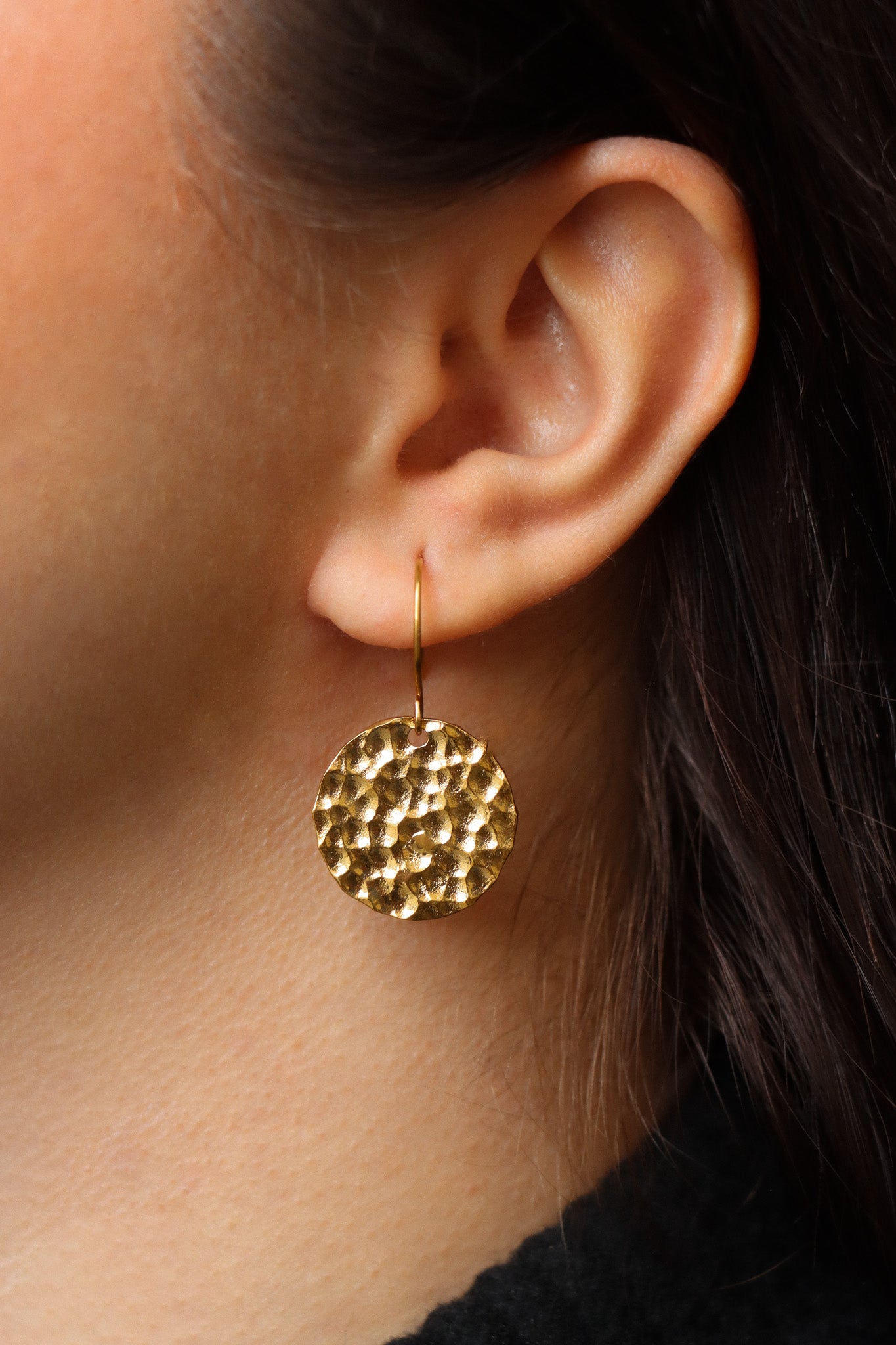 Diese Coin Ohrringe in gehämmerter Optik sind absolute Hingucker. Sie sind sehr leicht und haben dadurch einen hohen Tragekomfort.