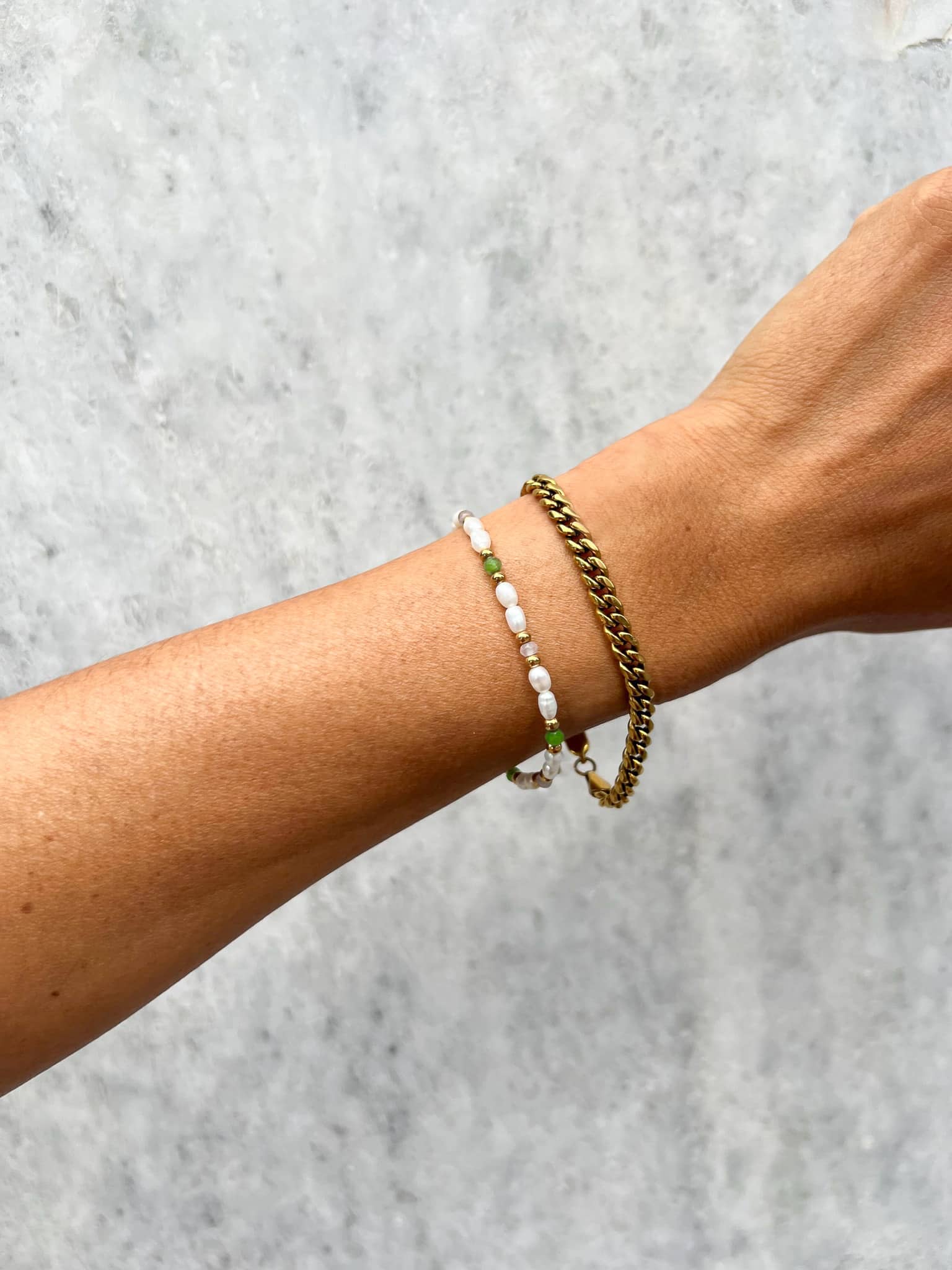Strahlen wie die Sonne - mit unserem atemberaubenden Cuba Santorini Bracelet Set! Diese perfekte Kombi vereint das grobgliedrige und stylische Cuba Armband mit dem eleganten Santorini Armband aus Süsswasserperlen, Rosenquarzperlen, grünen Chalcedon Kügelchen und goldenen Akzenten. Trage sie einzeln oder zusammen und geniesse das Urlaubsgefühl an deinem Handgelenk. Praktisch - das Bracelet Set ist wasserfest! Damit eignet es sich perfekt für jeden Tag und jeden Anlass. Ob beim Sport oder in der Dusche, deine Lieblingspieces kannst du nun mit gutem Gewissen Tag und Nacht anbehalten. Fresh, oder?