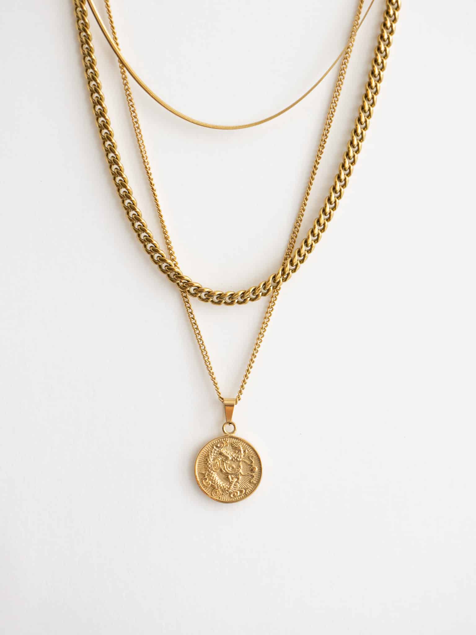 Unser Dragon, Cuba, Amélie Necklace Set ist ein echter Hingucker - und somit ein must-have für deine Schmucksammlung. Als erste und zweite Kette bilden unseren beiden Bestseller Ketten Amélie und Cuba die perfekte Basis. Die Dragon Necklace rundet deinen Layering Look ab. Der Drache symbolisiert einerseits Erneuerung und steht für den Mut den es dafür braucht.