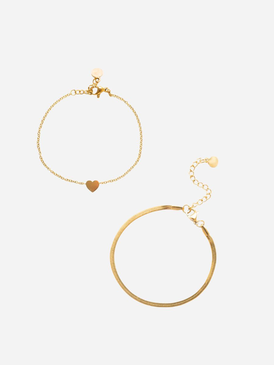 Das perfekte Everyday Set für jeden Look – zeitlos, elegant und vielseitig kombinierbar. Zwei feine Armbänder, die sich mühelos in deinen Alltag einfügen und jedes Outfit veredeln. Das zarte Herzdetail steht dezent für Liebe und besondere Verbindungen. Ein Bestseller Set für dich selbst oder als liebevolles Geschenk.