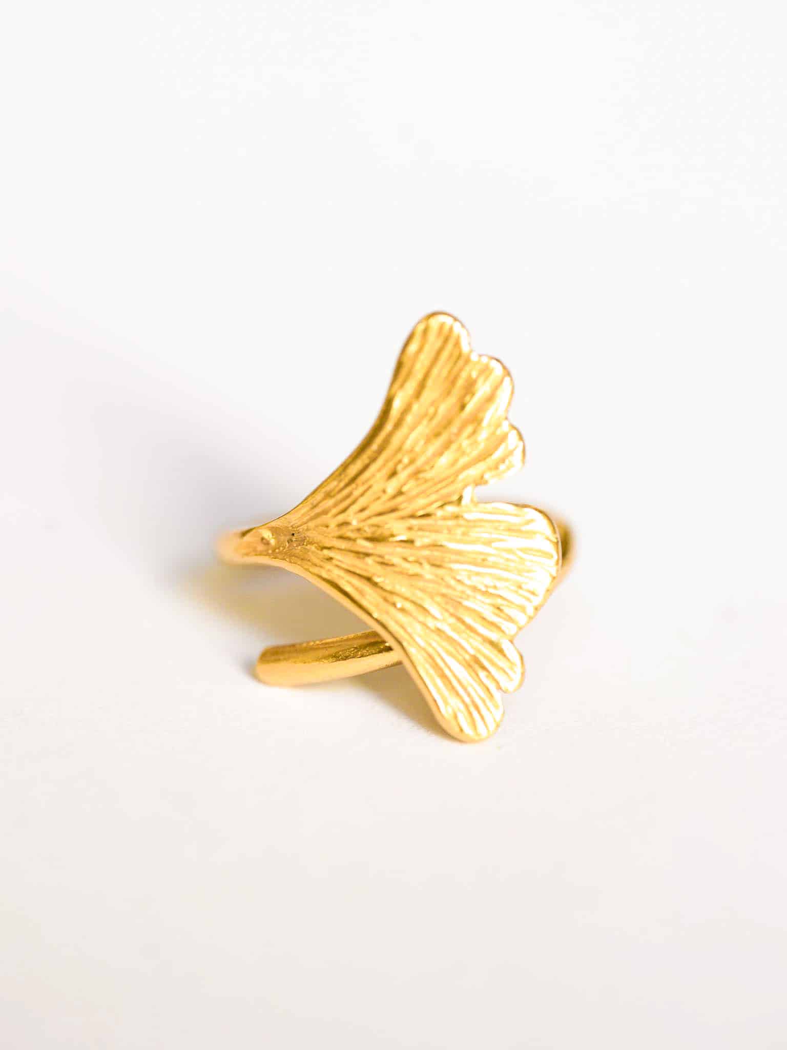 Der vergoldete Ginkgo Ring und die passenden Ohrstecker sind ein atemberaubendes Set, das nicht nur durch seine elegante Ästhetik, sondern auch durch seine symbolische Bedeutung beeindruckt. Der Ginkgo Baum gilt in vielen Kulturen als ein Symbol für Liebe, Hoffnung und Frieden. Besonders seine Blätter sind in ihrer Form einzigartig und stehen für Beständigkeit. Noch ein Pluspunkt? Der Ring eignet sich z.B. auch als Daumenring, denn er ist ganz einfach verstellbar.