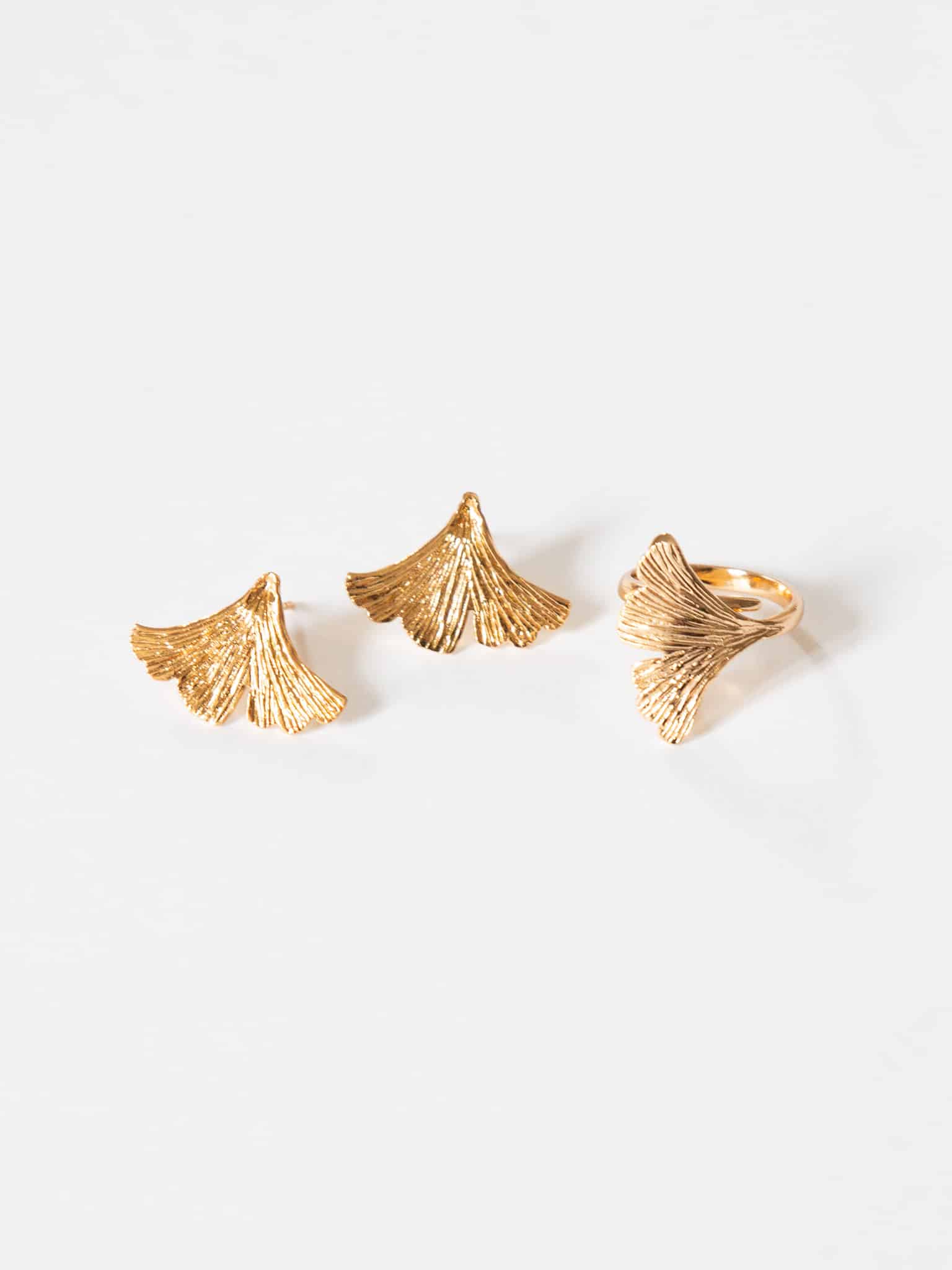 Der vergoldete Ginkgo Ring und die passenden Ohrringe sind ein atemberaubendes Set, das nicht nur durch seine elegante Ästhetik, sondern auch durch seine symbolische Bedeutung beeindruckt. Der Ginkgo Baum gilt in vielen Kulturen als ein Symbol für Liebe, Hoffnung und Frieden. Besonders seine Blätter sind in ihrer Form einzigartig und stehen für Beständigkeit.