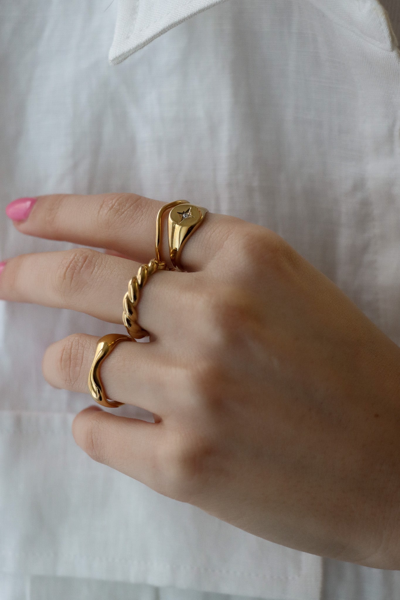 Möchtest du in Sachen Schmuck-Trends ganz vorne mit dabei sein? Dann wag dich an den Ring Stacking Trend und kombiniere das Goldstück gleich mit mehreren verschiedenen Ringen.