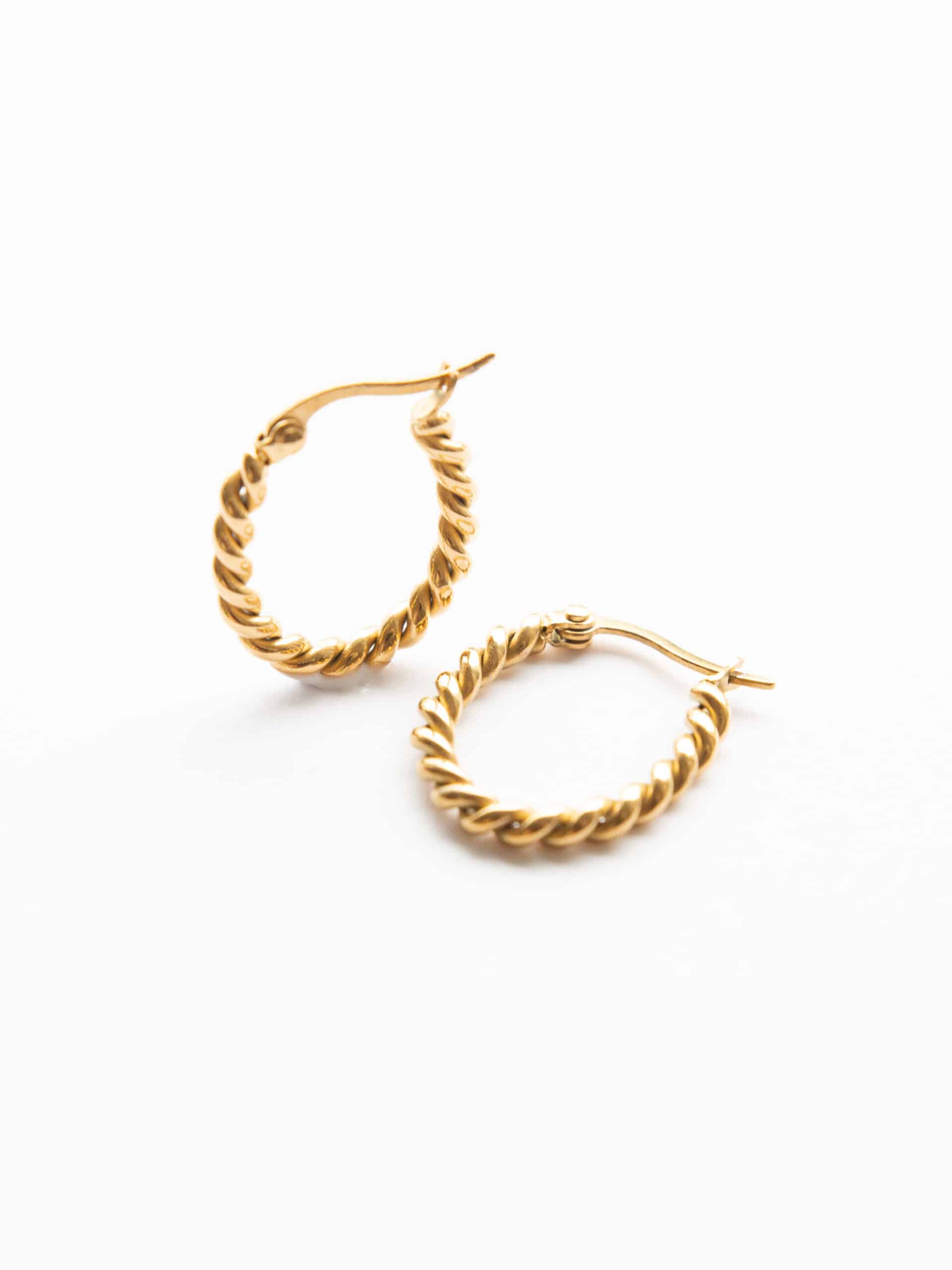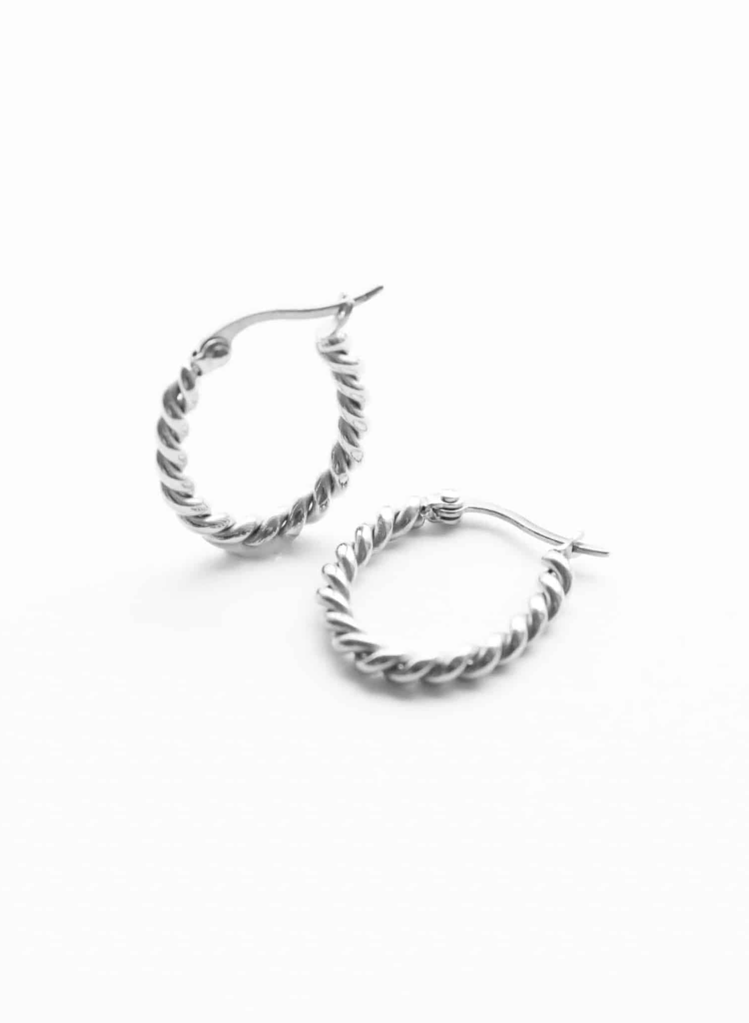 Marie Hoop Earring Perfekte Alltagshoops , die hübsch gedrehten Marie Creolen in ovaler Form. Die Creolen sind leicht und angenehm zu tragen. Zudem sind sie schnell an- und ausgezogen dank dem praktischen Click-Verschluss.
