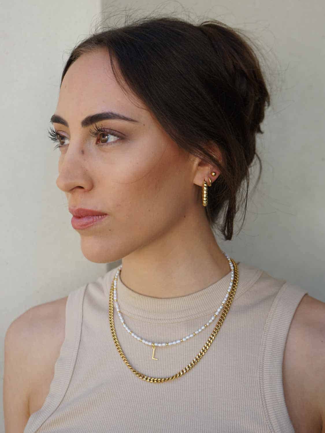 Verleih jetzt der einzigartigen Sonia Pearl Love Halskette eine persönliche Note, indem du einen Buchstaben hinzufügst. Durch diese individuelle Anpassung wird dieses wunderschöne Schmuckstück nicht nur zu einem stilvollen Accessoire, sondern auch zu einer bedeutungsvollen und persönlichen Halskette. Die schimmernden Süsswasserperlen, kunstvoll unterbrochen von zarten Goldkügelchen, sind sorgfältig und in feinster Handarbeit aneinandergereiht, um dir ein elegantes Schmuckstück zu präsentieren. Die Sonia Pearl Love Necklace ist für sich schon ein absoluter Hingucker, es lässt sich jedoch auch ideal mit anderem Halsketten kombinieren oder bildet im Set mit dem Sonia Pearl Love Bracelet das perfekte Ensemble. Trage es ebenfalls als Basis für ein elegantes und trendiges Halsketten-Layering.