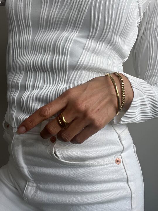 Unser goldener, schlichter Sara Bangle ist ein wahrer Blickfang für jedes Handgelenk. Mit seinem zeitlosen Design und der edlen goldenen Farbe verleiht er jedem Outfit das gewisse Etwas. Das Sara Bangle ist ein Must-Have für jede modebewusste Frau. Es ist 100% wasserfest und passt perfekt zu deinem Stil.