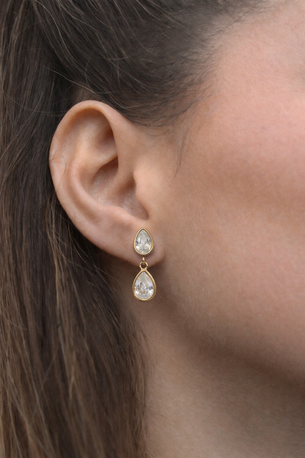 Double Zircone Drop Stud - Ohrstecker (wasserfest)