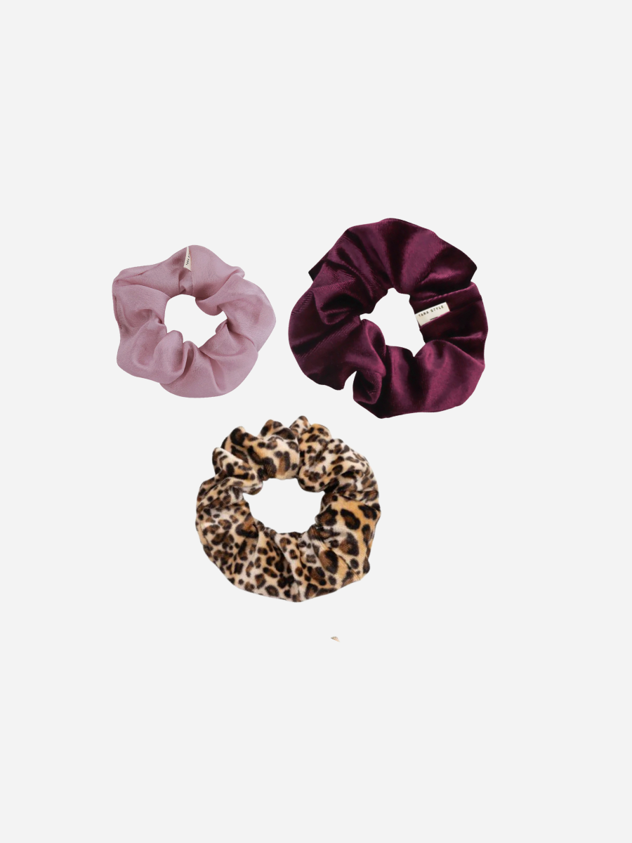 Das Wild Love Hairaccessoire Set vereint drei aufeinander abgestimmte Designs für vielseitige Stylings. Von elegantem Satin in tiefem Beeren­ton über zartes Rosé bis hin zum trendigen Leo-Print bietet dieses Set die perfekte Mischung aus klassisch, feminin und modern. Die harmonische Farbwelt passt sich mühelos jedem Look an – ideal für Everyday-Outfits, als stylisches Detail für dein Haar.