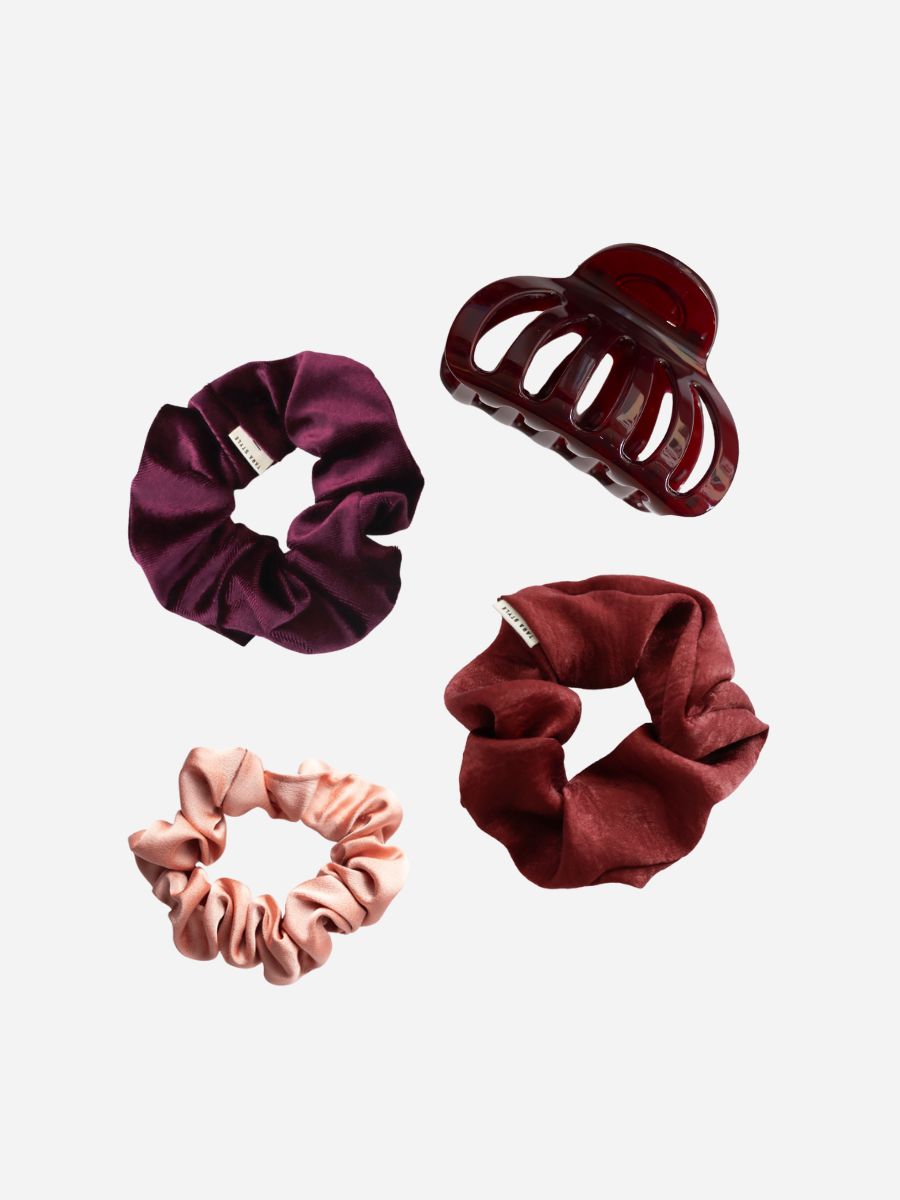 Mit dem Berry Cream Haaraccesoire Set erhältst du gleich vier trendy Tagesbegleiter fürs Haar, welche die perfekte Lösung sind, wenn es einmal schnell gehen muss, aber trotzdem stylish aussehen soll. Ein weiterer Pluspunkt? Als Set erhältst du die Haaraccessoires zum reduzierten Preis.